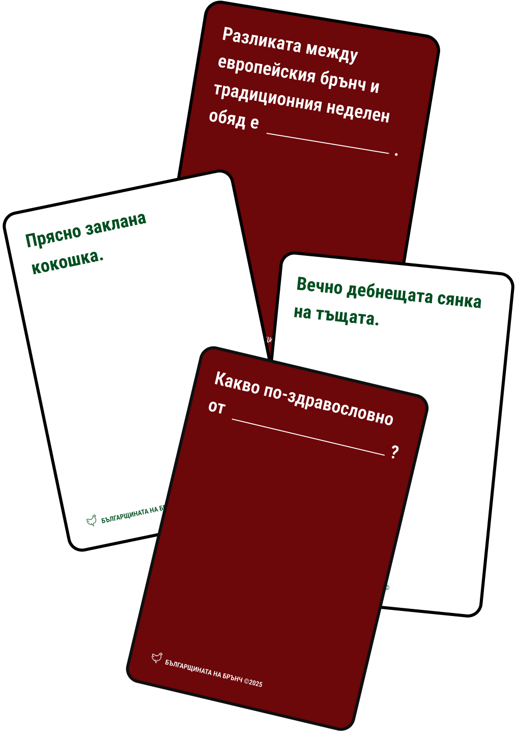 В един слънчев ден ни осени идея и заедно създадохме една нова игра, посветена на семейните абсурди, дългата сянка на тъщата, безглавите кокошки и разликата между семейния обяд и традиционния брънч.